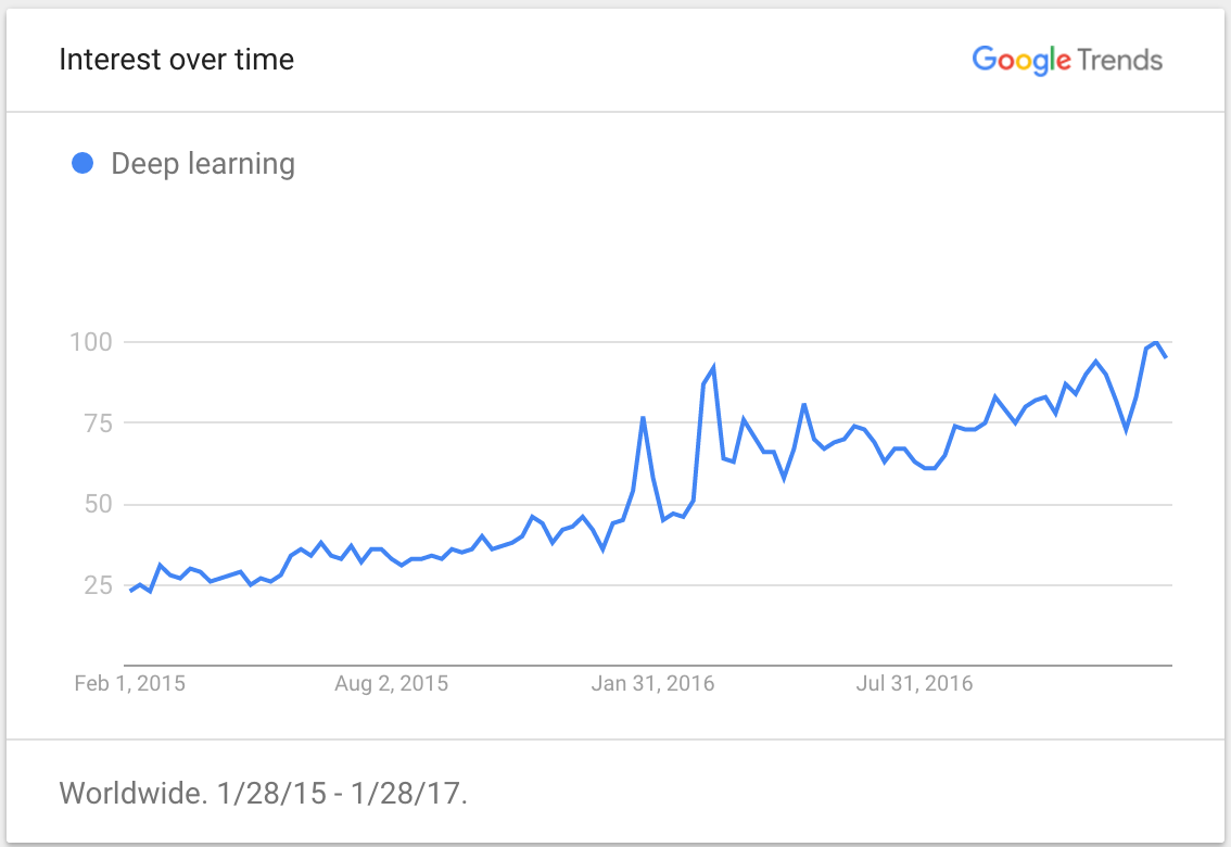 Artificial Intelligence (AI) is everywhere, from startups to enterprises, and even Hollywood. The search frequency of the term “Deep Learning” (DL) has grown 4x in the last two years. It seems to be the subject of every article (guilty), conference, and startup. It all feels a bit overhyped. Nonetheless, when you cut through this hype, AI is the next wave of innovation — and this is only the beginning.