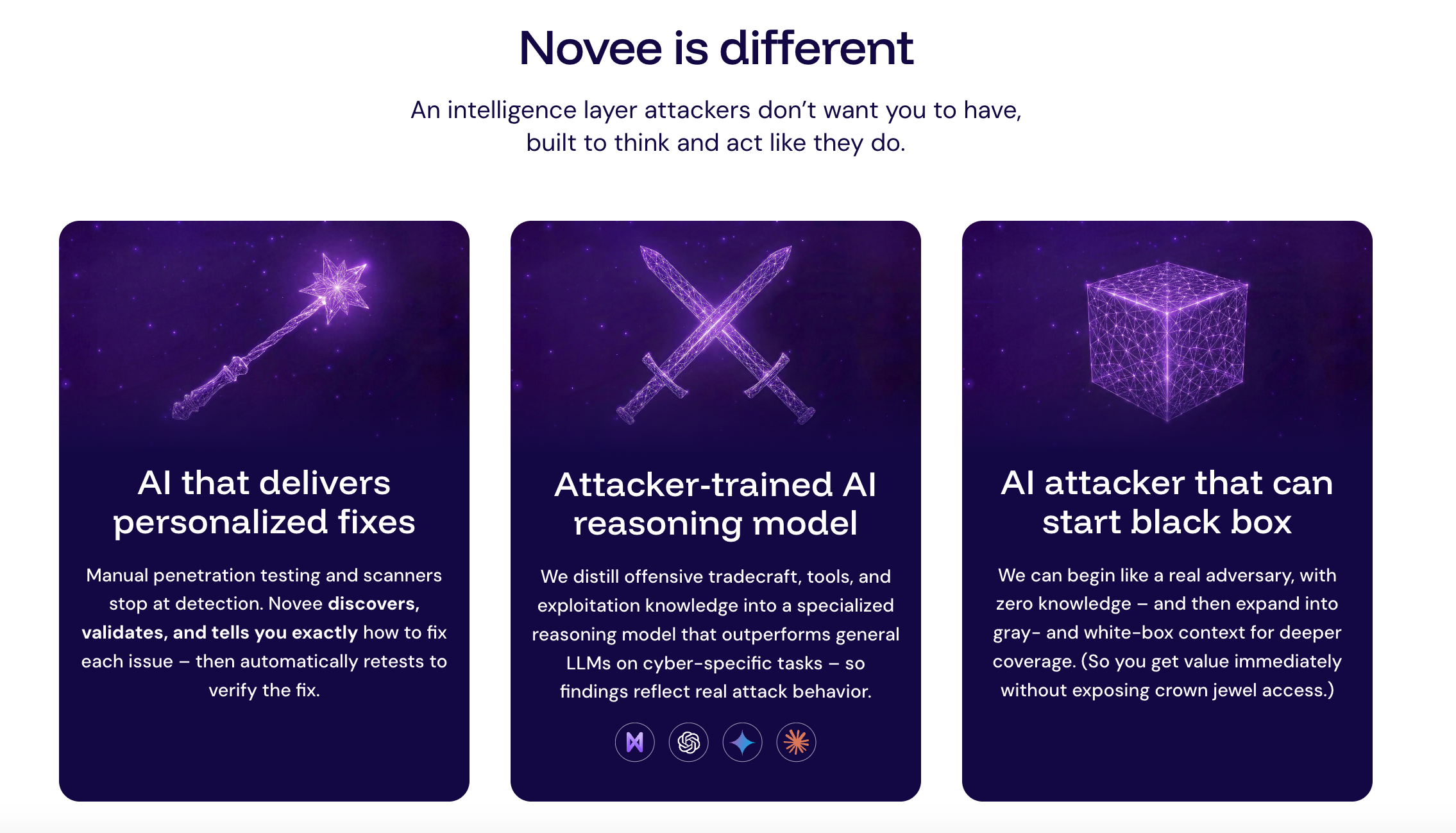 Led by founders Ido Geffen (CEO), Gon Chalamish (CPO), and Omer Ninburg (CTO), the Novee team brings deep experience operating in some of the most advanced offensive security environments worldwide. That background matters. AI is only as effective as the expertise used to train it, and in offensive security, knowing the landscape makes all the difference. Novee’s approach is to encode elite attacker intuition into purpose-trained AI agents, turning the tactics of top human pentesters into software that can operate continuously.